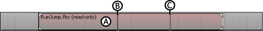 The Mark In and Mark Out fields let you trim the beginning or end of a selected clip. The fields use the local time of the selected clip. The Mark In and Mark Out fields appears for selected animation, character, camera animation, video, and audio clips.