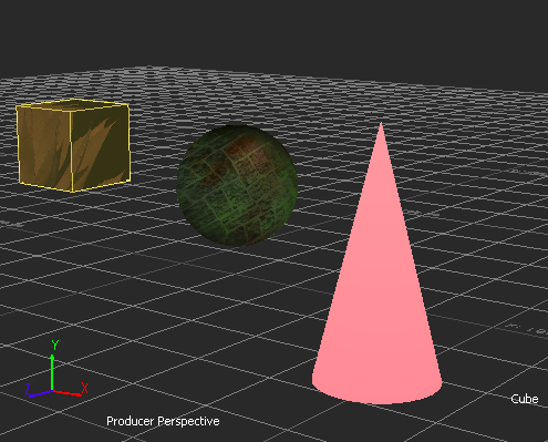 Setting the Display mode to Normal, X-Ray, Models Only, or Models Display Wireframe enables you to see objects and models, their bounding box centre (displayed as a Magenta hexagon), and their Rotation and Scaling pivots.