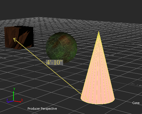 The system Ruler "object" is created and displays the distance between the two objects.