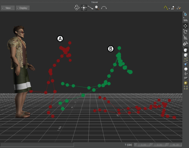 When you activate the Match option in the Pose Settings Match column, you set the corresponding pose as a goal that the Character must meet. Match poses appear in the Viewer window as a red stick figure.