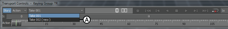 Transport Controls A. Select Take 00n (new) in the Current Take menu.