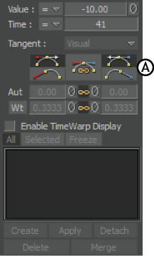 When the TCB tangent option in the Classic Mode is active, the Tangent area displays the Tension, Continuity, and Bias settings that are the same as those in the Dynamic Editor. See TCB interpolation settings.