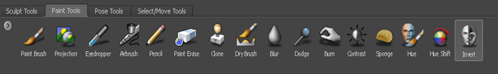Paint within the brush ring changes to the inverse color hue and color value. No buildup of the invert effect occurs, as stroking repeatedly on the same region simply re-inverts the paint.