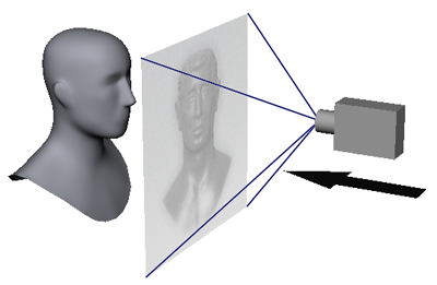 The image appears in the center of the 3D View in front of the model (provided that the camera is selected and the 3D View is set to look through it).