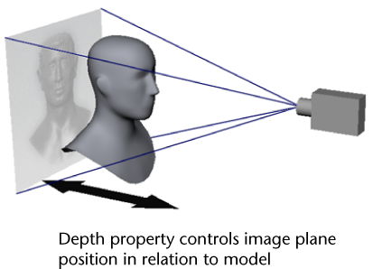 - To adjust the depth position of the image plane so it appears either in front, behind, or intersects the model, adjust the Depth property.