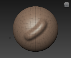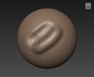 This time the affected vertices are moved inwards in relation to the polygonal mesh, creating a trough.