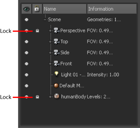 Locking a model prevents it from being accidentally edited, moved, or sculpted in the 3D View as you work around it.