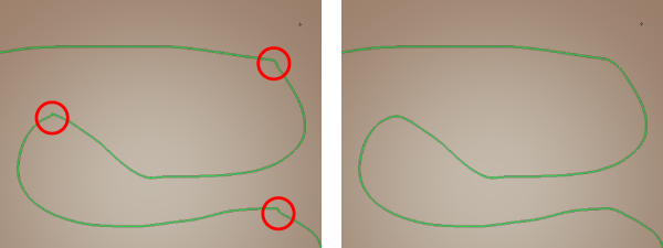 In some cases, in particular as you join several curves together or extend a curve, small kinks or bumps can form in an otherwise smooth line. Use the Smooth Curve tool to relax any irregular or jagged points in your curves.