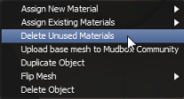 You can delete a specific material using the Object List, or right-click a model to delete any unused materials in your scene.