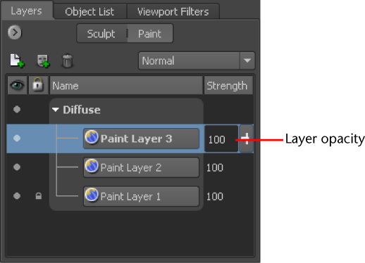 - Select a paint layer, then double-click the layer’s Strength value and enter a new value or drag the opacity slider keeping in mind the following: