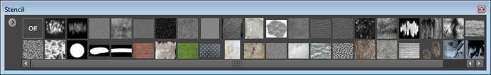 Stencils function in a manner similar to their real world counterparts. Black values in the stencil image act as opaque regions that fully protect the model while white values allow the tool to pass through and affect the model. Areas outside the stencil image are regarded as black and remain unaffected.