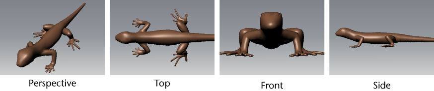 Cameras are the digital lenses through which you view objects in Mudbox. You can look through any of the four cameras in the 3D View by default (Perspective, Front, Top, and Side) to view and evaluate your 3D models from many points of view.