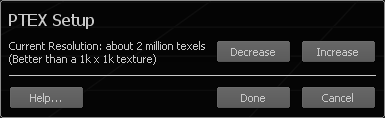 This window displays the first time you select UVs & Maps > PTEX Setup from the main menu bar.