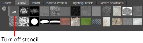 - When finished using the Projection brush, click the Off icon in the Stencil tray to quit the stencil. (Otherwise, the stencil remains active on the Projection brush.)