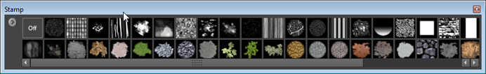 You can apply stamps to a sculpting tool, so the stamp image affects the tool tip in a repeating manner when you stroke. See Sculpt using stamps.