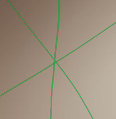 For example, if this threshold value is set too low and multiple curves intersect (as in the following image), Mudbox creates multiple vertices close together, and one tiny face. Increasing this value ensures that this intersection results in one vertex.