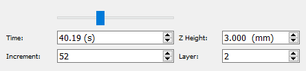 When you select a Layer number or Z height value, the standard controls for Time and Increment adjust accordingly.