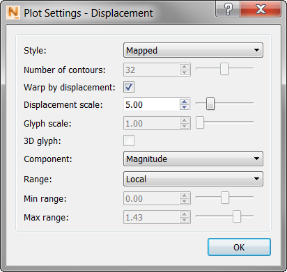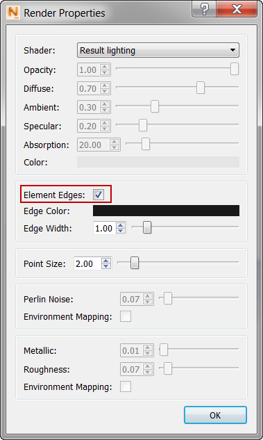 Render Properties dialog. The warped displacement results with visible element edges should look similar to the figure below: