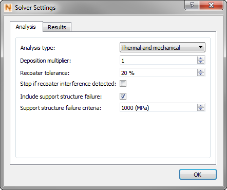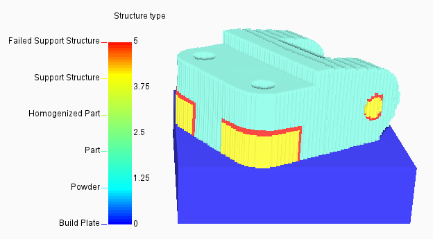 Support structures are used to mitigate excessive distortion during powder bed processing. However, these structures are themselves subject to the same forces that distort the part. In this tutorial, a geometry with a large overhang area is modeled using homogenous support structures, with options enabled to check for support structure failure.