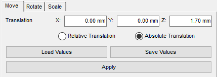 It is important for this exercise to place the part directly on the platform, not above it. In the example below, the part's position has a Z value of 1.70 mm, so we must bring this to 0.