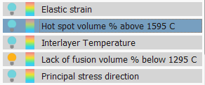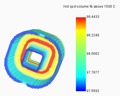 Hot spot temperatures - This specifies the temperature(s) which, if exceeded, can result in poor build quality. The results of the ensuing part level simulation depicts what percentage of each element is likely to be above each hot spot temperature.