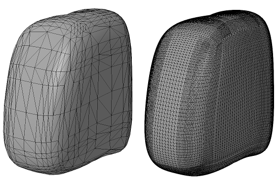 The function surface from the part library as a mesh (left) and its conversion into a BREP parametric part (right).