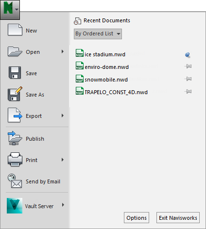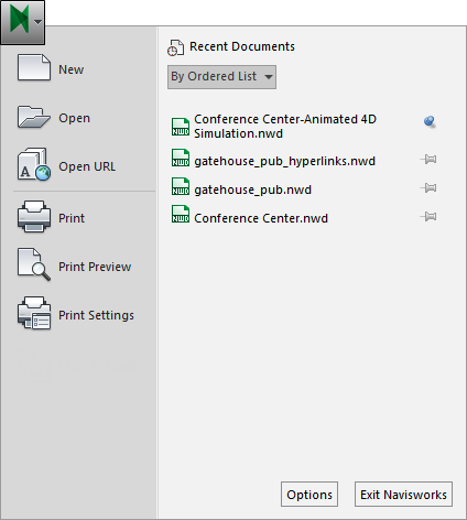 To open the application menu, click the application button . Clicking it again closes the application menu.