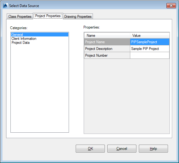 - Project Data. Displays the default project data properties and any properties you have added.