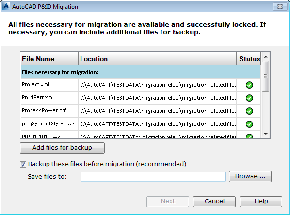 - Verify that the project and its related drawing files are closed. On the Project Migration Launch page, click Next.