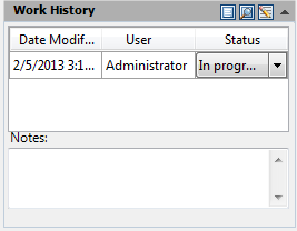 You can enter work history status and notes for any drawing in the Work History area of the project manager.