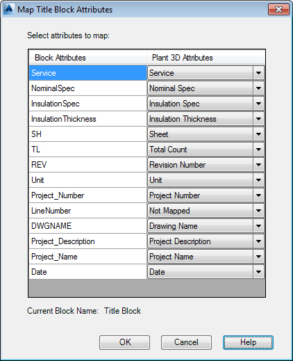 Specifies a property for the project or line. If set to Not Mapped, no Plant 3D property value is assigned. Setting Not Mapped allows you to assign custom values which will not be overwritten.