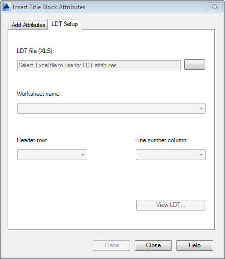 In the Insert Title Block Attributes dialog box, click the LDT Setup tab and do the following: