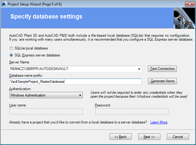 Note: Beginning with AutoCAD Plant 3D 2016, the vault administrator role is required only when creating the first project. Additional projects do not require the administrator role.