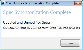 Note: To synchronize specs with catalogs, the spec file must be closed and exclusive access to the spec file is required.