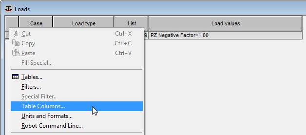 - In the Loads table click the Values tab.