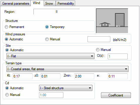 Clicking Coefficient opens the dialog that lets you define the coefficients for a wind load.