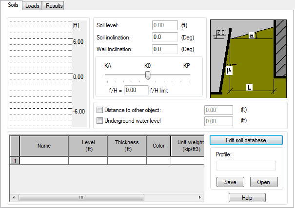 - Data that specifies the soil work that results from the displacement of a retaining element. The displacement is defined using the rotation element r, which is assumed to be approximately equal to: f/H (wall top displacement / element height). The soil work mode can be determined as: