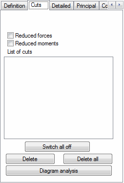 - Display of the cut is toggled on or off for the structure. If selected, the cut will be presented on the structure together with the selected diagrams of the indicated quantities.