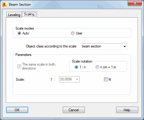 The options found on the Scaling tab of the Beam Section dialog are connected to the options found in the Preferences (Printing Parameters > Scale), with which you can specify the scale on separate print-out pages (the same scale on all pages, different for separate pages, different for each object on the same page).