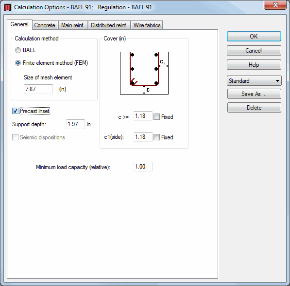 Once the Calculation Options dialog box is opened for deep-beams and the General tab is selected, the dialog box shown below will appear on the screen.