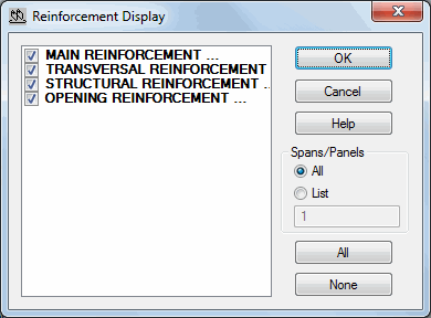 The above-presented dialog box contains four main types of reinforcement used in RC structures. All are toggled on by default.