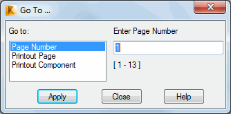 Open a Print Preview and click Go to to jump to a selected component element of the printout.