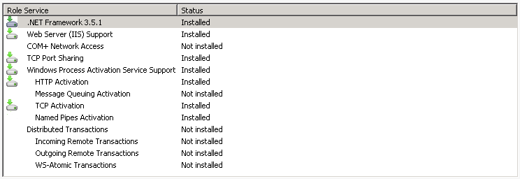 - Scroll down to Role Services, and verify that the following 6 role services are installed: