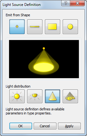 Note: The Family Editor is the only place where you can define the shape of a light source in a lighting fixture family. You cannot change the shape of a light source for a lighting fixture in the context of a model.
