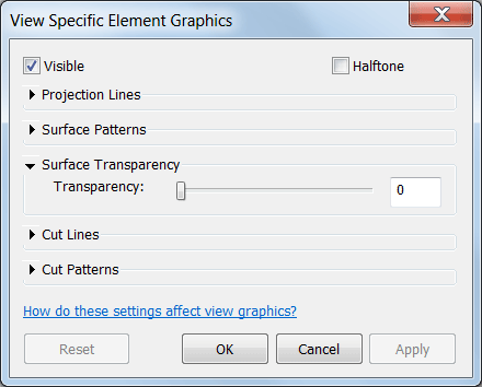 3. In the View-Specific Element Graphics dialog, change the settings as desired.