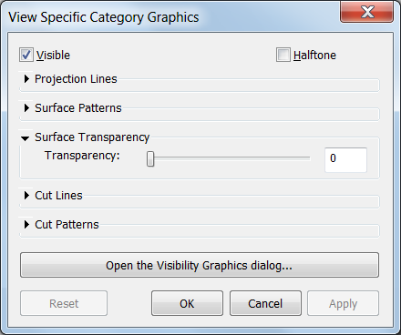 - Click Apply to view your changes, and click OK to exit the Visibility/Graphics dialog.