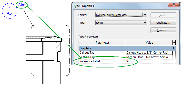 By default, the callout head for a reference callout includes a label (such as Sim, an abbreviation of Similar). You can change this label to meet project needs or corporate standards. For example, you can use Mirror or Reverse as the reference label.