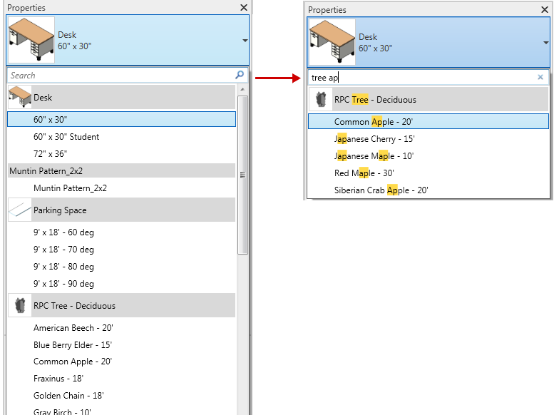 Revit LT to make it easier to select from a long list of options. You can search in the following functional areas: