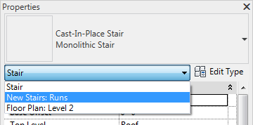 - In the Type Selector, select the type of stair you want to create. You can change the type later, if required.