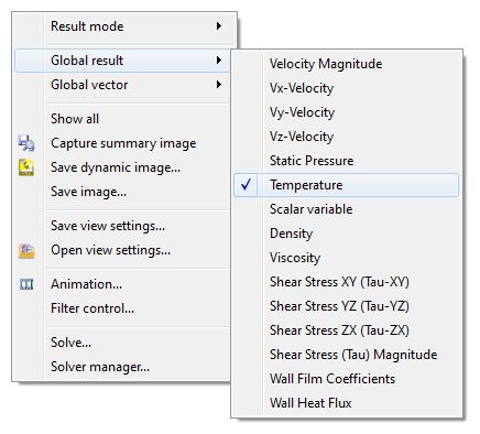 3. To display the temperature on the model, right click and select Global result. Select Temperature from the list.